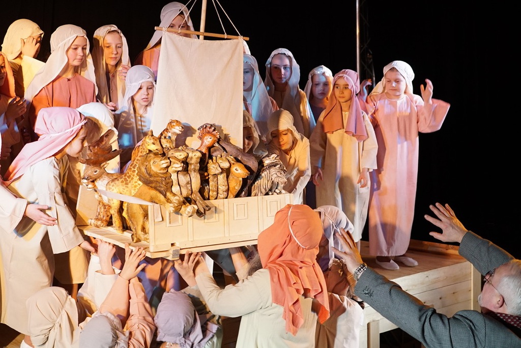 Сюжет бриттеновской оперы и сам выбор этого произведения театром «Зазеркалье» неслучаен: мир потерпел катастрофу во времена библейского Ноя и живет на грани катастрофы в современном мире, в эпоху невиданных по бесчеловечности войн, социальных и экономических потрясений. Невзирая на тысячелетний опыт, человечество отметает мудрость предыдущих эпох. И, может быть, как никогда остро проблема сохранения жизни на планете и человечности в каждом из нас встает перед нынешним поколением. В том числе перед теми, кто сегодня находится в зрительном зале и кто играет в «Ноевом ковчеге» на сцене «Зазеркалья».
