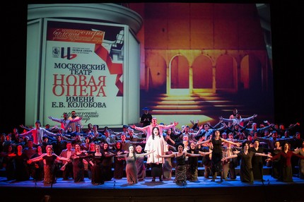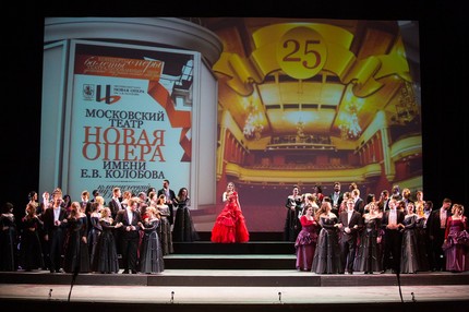 В фойе театра к его четвертьвековому юбилею была приурочена фотовыставка «Новая Опера: 25 лет – 25 опер». В путешествие по страницам тех же самых опер, представленных не в порядке появления их постановок, а по принципу жанрового контраста, пригласила и насыщенная программа гала-концерта в трех отделениях. За дирижерским пультом весь вечер находился Евгений Самойлов, старейший дирижер труппы: театр был основан в 1991 году, а маэстро пришел в него в 1993-м. На самом деле в юбилейном концерте мы услышали фрагменты из 26 спектаклей. Номер из «Аиды» Верди, звучавшей в этом театре лишь в концертном формате, предложил добавить в программу вечера дирижер. И это вселило надежду на то, что существующая в театре традиция перерастания концертных исполнений в постановки распространится и на это название.