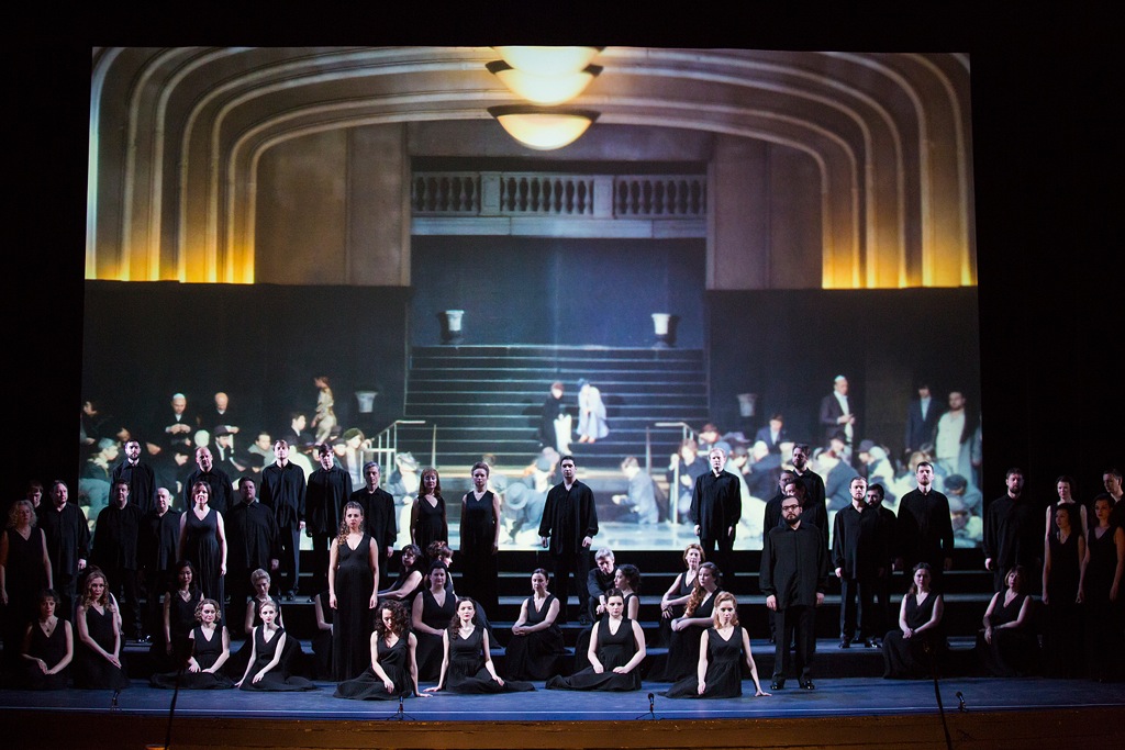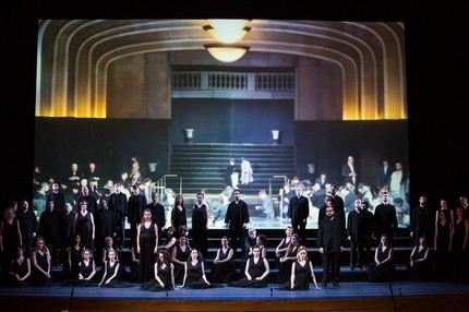 Не менее эффектно были представлены финал I акта из «Итальянки в Алжире» (как часть концертного дивертисмента «Россини») и сцена-молитва с хором из «Сельской чести» Масканьи (Сантуцца – Ирина Морева). Контрастные стилистические краски внесли в программу терцет из I акта «Нормы» Беллини (Норма – Татьяна Печникова, Поллион – Александр Скварко, Адальджиза – Галина Бадиковская) и ансамблевая сцена с вальсом Мюзетты из «Богемы» Пуччини (Мюзетта – Екатерина Миронычева). В хоровом зачине «Травиаты» с неувядающей застольной на сей раз вышли сразу четыре Виолетты и четыре Альфреда, но на волне ностальгии более всего захватила сцена двух королев и финал I акта из «Марии Стюарт» (Мария – Эльвира Хохлова, Елизавета – Маргарита Некрасова). Фирменный стиль Хора «Новой Оперы» пленительный хор плененных иудеев из «Набукко» Верди высветил особенно сильно (хормейстеры – Наталья Попович, Марина Василькова и Андрей Лазарев).