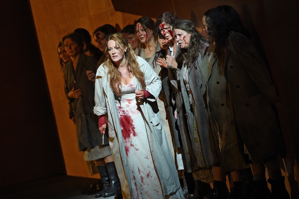Хор оставили полностью статичным: как спички, которые время от времени вместе плоско выдвигаются из коробка. Хоровые номера для Гамбургской оперы, так или иначе, не являются выигрышными.