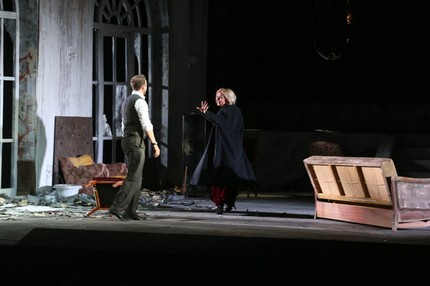 В финале оперы Виолетта, уже познавшая любовь и принесшая ее в жертву, тем самым находит успокоение и очищение, что отражено и в сценографии: мебель закрыта белыми чехлами, мусор убран, а душа вознеслась на небо в виде луча света.