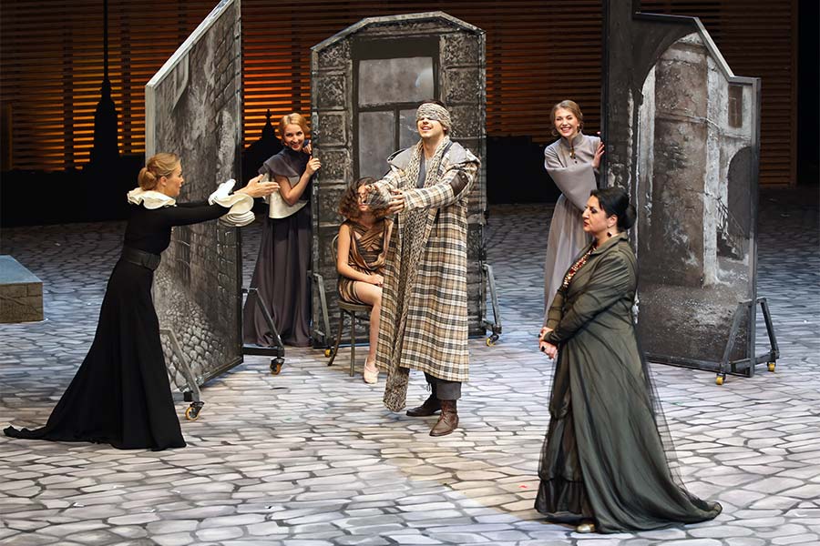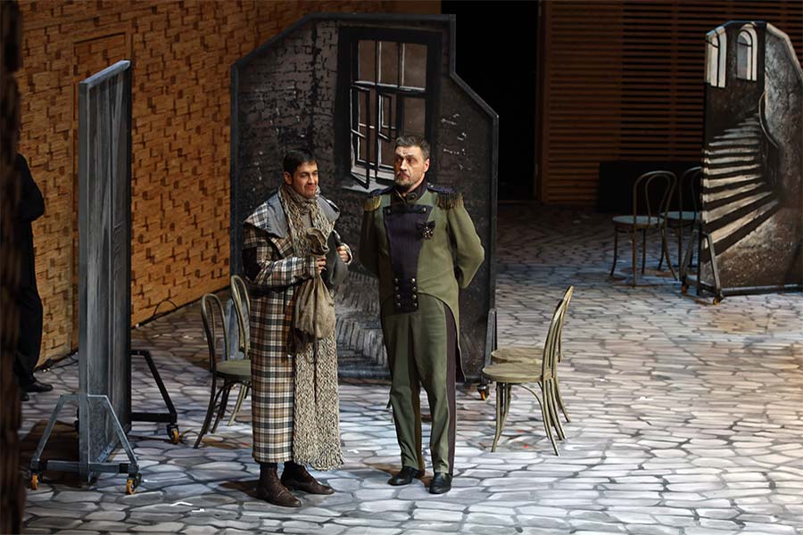 В Степанюке самом парадокс на парадоксе: нежность и сарказм, русский консерватизм и изменчивость реки в половодье, Рогожин и Мышкин, тишайшесть как у Зосимы и надрыв Мити Карамазова. И его вечные вопросы, вопросы, вопросы, на которые он ищет ответы в своих спектаклях. И находит все чаще и чаще в метафорах и образном строе постановок, вангуя и пророчествуя. Кажется, что его творческая интуиция в последние годы обострена до предела. Примеры тому – и «Очарованный странник», и «Левша», и «Евгений Онегин», и особенно «Пиковая дама» и «Сцены из жизни Николеньки Иртеньева».