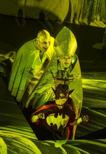 Кроме того, на сцене появляются и исчезают другие странные персонажи: издатель Кирхера Янссониус, палач, три макбетовские ведьмы одетые в латекс и шлемы, Он и Она — пара молодых влюбленных, поющих нежнейший лирический дуэт.