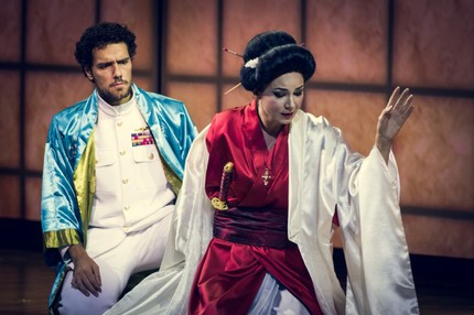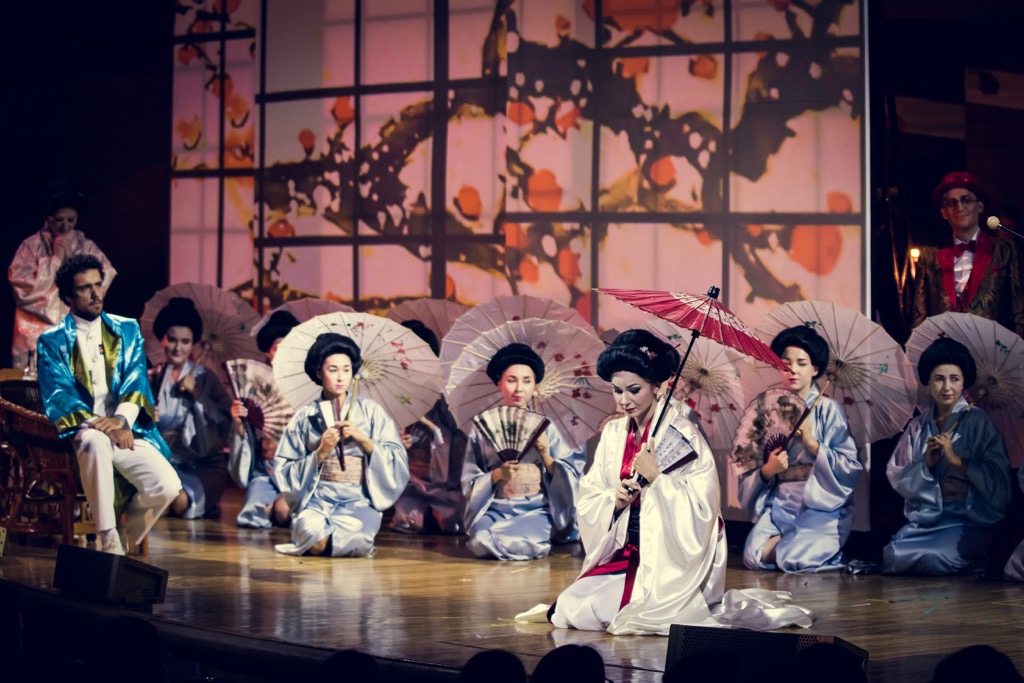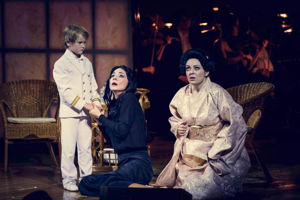 Оперы в концертных залах, как правило, и дают в концертном исполнении. Реже – в semi-stage формате. Вот и на сей раз, когда прошла информация, что у проекта «Мадам Баттерфляй» Пуччини, анонсированного на сцене Светлановского зала Московского международного Дома музыки, есть еще и режиссер-постановщик, априори подумалось, что мы, скорее всего, имеем дело с очередной semi-stage инициативой. Однако постановочно-сценографические решения режиссера Михаила Панджавидзе, взявшегося за осуществление этого проекта, из semi-stage рамок однозначно выходят – и можно уверенно говорить о вполне состоятельной и самодостаточной театральной постановке с весьма действенными мизансценами, костюмным и даже минимальным сценографически-реквизиторским наполнением.