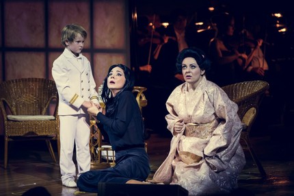 По сравнению с постановкой в театре эта облегченная театральная версия на сцене концертного зала производит даже более целостное впечатление, так как упомянутый спектакль Михаила Панджавидзе в Казани перегружен мало бьющей в цель ассоциативной символикой параллельных смыслов. Ее след в виде страшных кадров последствий ядерной катастрофы Хиросимы и Нагасаки остался и в видеоряде московского проекта, однако основное внимание на сей раз уделено всё же тому, чему и должно быть уделено, исходя из музыкально-драматургических задач самóй партитуры. На сей раз атмосфера трагической мелодрамы, в центре которой – судьба несчастной Чио-Чио-сан, не заслоняется ничем. Именно поэтому эта постановка в Москве так точно и мощно бьет в цель.