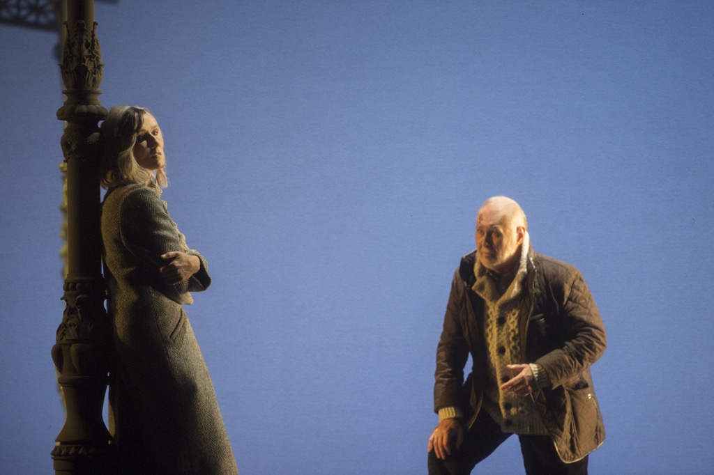 Те минуты, когда торжествующее крещендо заливает светом бескрайние владения Синей Бороды, являются мгновениями наибольшего отчуждения между герцогом (Балинт Сабо) и его женой Юдифью (Клаудия Манке). В спектакле это момент, когда Синяя борода оказывается на пороге безумия.