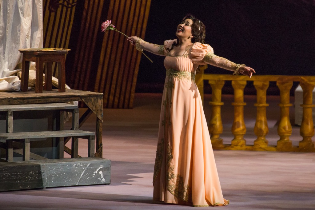 Если в первом и третьем актах вокальных ресурсов певице вполне хватает, то второй именно в вокальном отношении несколько «проседает».
