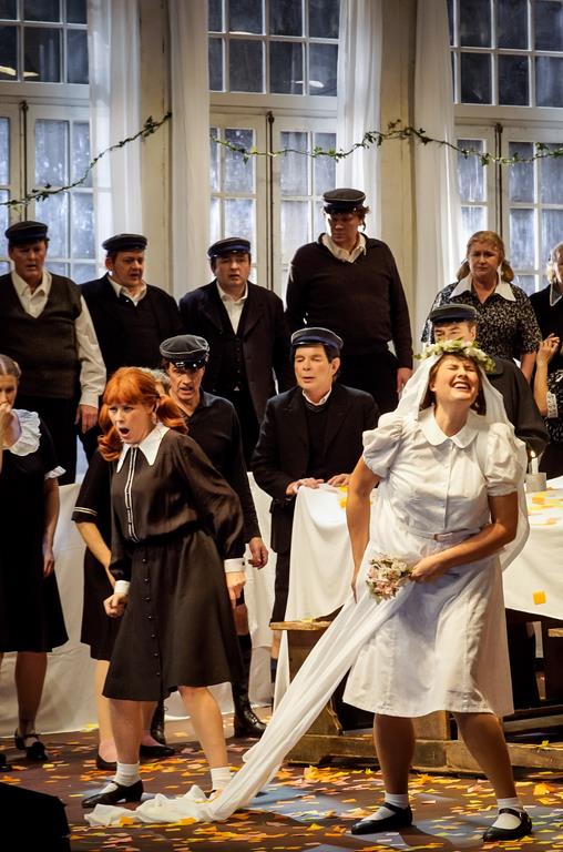 В открывающей спектакль картине Владимир Байков (Глашатай) в образе учителя с палкой пытается успокоить непокорный класс. Если бы он так грохнул своим вагнеровским голосом в настоящем школьном классе, детишки надолго притихли бы. А вообще этот суетливый класс мог бы быть и дружнее (хормейстер Эберхард Фридрих).