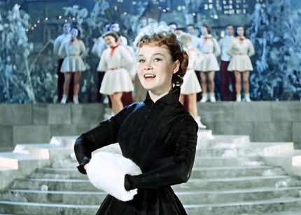 Во всех новогодних кинолентах мы прослеживаем отношение социума к дилемме «общественного» и «личного». Неслучайно оттепельные герои справляют Новый Год в своём рабочем коллективе, интеллигенция времён Застоя — в уютных, но при этом стандартных квартирах, а предперестроечный коллектив опять стремится в банкетный зал, на грандиозную дискотеку… Итак, наша «Карнавальная ночь» (1956) случается в разгар Оттепели — то была эра коллективизма, когда всё персональное и частное задвигалось, считалось малоценным. Точнее — мещанским, тухлым. Фестивальные танцы на площадях. Чтение стихов в громадных аудиториях. Пение авторских песен в походах и загородных электричках. Встречи друзей в молодёжных кафе — чтобы к любой компании мог присоединиться всякий посторонний гость. Просто так. До хрипоты спорить о кибернетике, а на выходе затянуть про «солнышко лесное». Весёлая суета и бесконечность дружбы. Энергичная потребность быть вместе, танцевать в большом зале, устраивать курьёзы и розыгрыши. Не просто так — с особым «оттепельным» смыслом.
