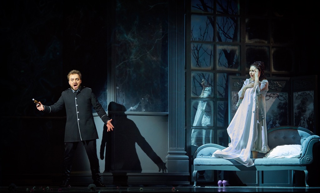 В том числе и поэтому совсем не удивляет постоянная подмена Лизы — Графиней. Это заложено в повести, либретто, в музыке. Александров просто делает подмену образов одним из эпицентров драматургии.