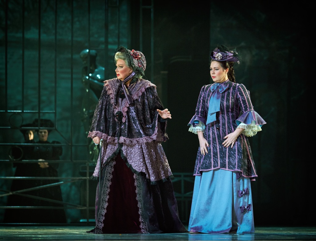 Немолодая героиня активно кокетничает с Германом: пританцовывает, кружится, открывая стройные ножки. Татьяна Ерастова, исполнившая эту партию на первом спектакле, нашла очень верный внутренний темпоритм для песенки Гретри: без старческой грузности, но с чуткостью к каждому слову-вздоху.