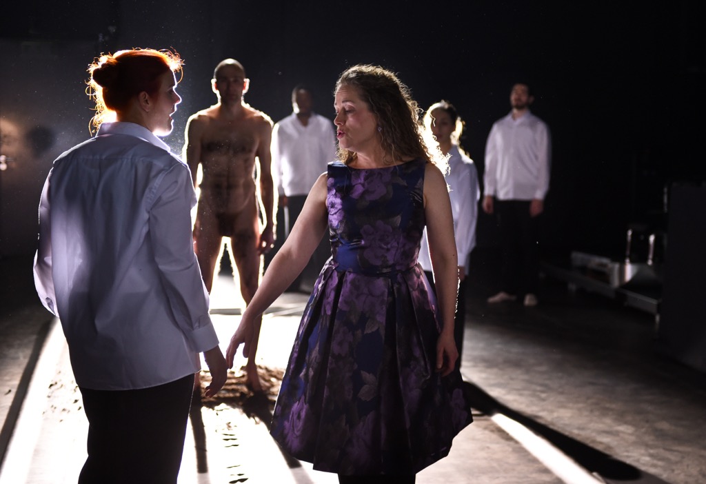 Спектакль выстроен для семи голосов, но один из участников, баритон Зак Карити, заболел, что повлекло за собой изменения. Кроме уже названных артистов, в постановке задействованы Таня Аспельмайер (сопрано), Габриеле Россманит (сопрано), Амелие Саадиа (альт), Сергей Абабкин (тенор) и Феликс Швандке (бас). Все достойны упоминания.