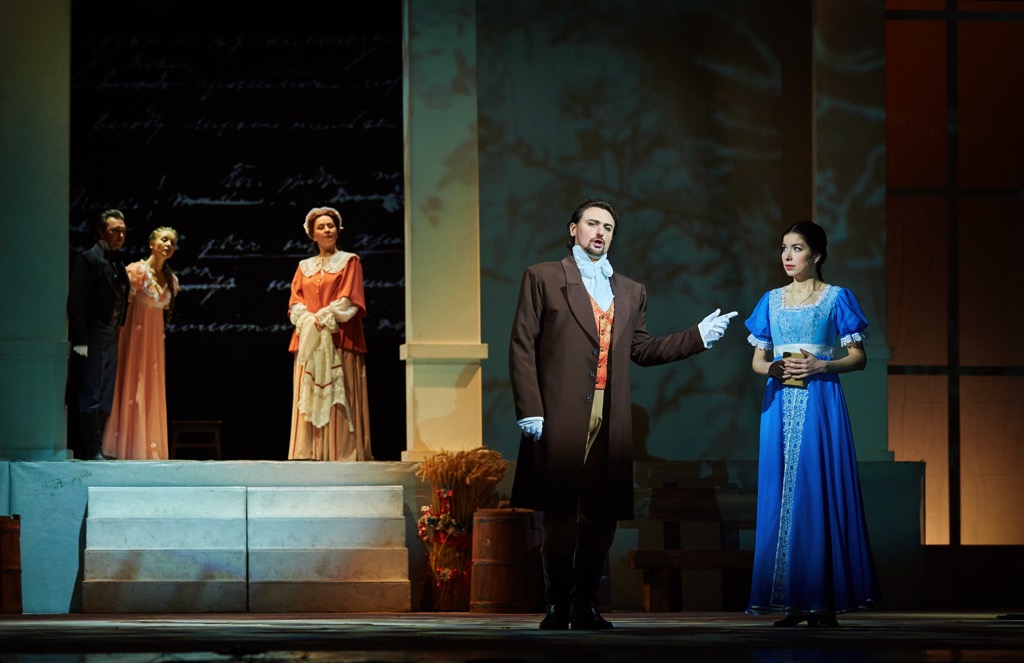 Постановка Михаила Панджавидзе принципиально традиционна. Режиссер считает, что эта опера и не должна становиться поводом для экспериментов. Поэтому в его спектакле нет дам в мини, нет алкогольного угара — того, чем грешат, к примеру, немецкие версии «Онегина». Постановка в определенном смысле хрестоматийна: мизансцены легко читаются — они словно иллюстрации из любимых изданий романа, герои абсолютно правдиво выведены из пушкинского текста и музыки Чайковского.