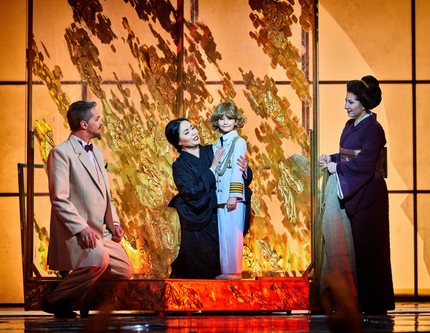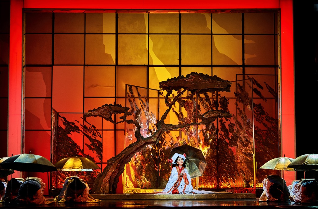 Пуччини надежно защитил «Мадам Баттерфляй» от спонтанных режиссерских поступков. Морским узлом он привязал свою оперу к определенному месту и времени действия. Круг тем его сочинения очень компактен: жертвенная трагическая любовь хрупкой восточной девочки, противопоставление Запада и Востока. До явления его прекрасной японки в 1904 году оперный мир познакомился с другими восточными красавицами — «Мадам Хризантемой» Мессаже, «Ирис» Масканьи.
