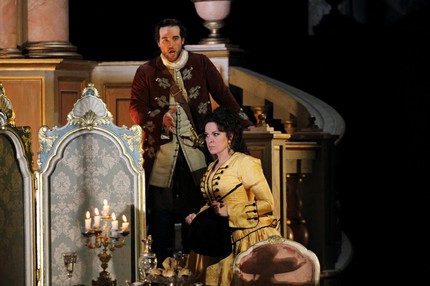 Анджела Георгиу, которая исполняла главную роль и семь лет назад, просто «купается» в любви и заботе, в тонкой поддержке канадского бас-баритона Джеральда Финли в роли Мишонне — режиссера театра, старого друга, безмолвно и безответно влюбленного в нее.