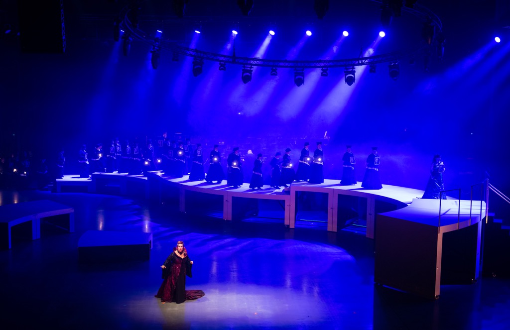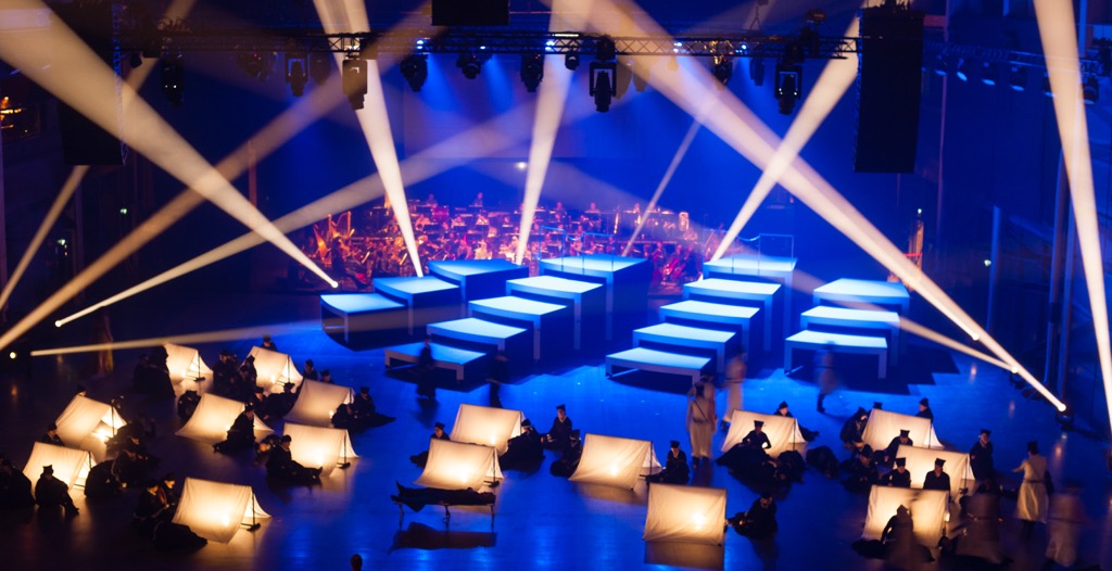 Для его сценической реализации использовали помещение старого паровозного депо, преобразованного в огромный театрально-выставочный комплекс Logomo. Размеры сценической площадки и постановочные технологии впечатляют. Спектакль прошёл блоком в шесть представлений, но, думаю, показы будут повторяться — эффектное действо с очень красивой музыкой безусловно того требует.