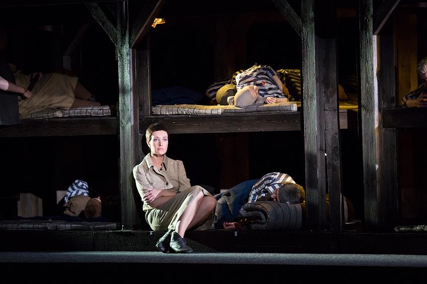 В сценах за колючей решеткой Освенцима и в его тесном бараке, где можно только лежать, в Марте (Наталья Креслина и Галина Бадиковская) сохраняется внутренний стержень и личная свобода. Но все же ее персонаж работает скорее как катализатор для раскрытия образа Лизы, прекрасно воплощенного Валерией Пфистер.
