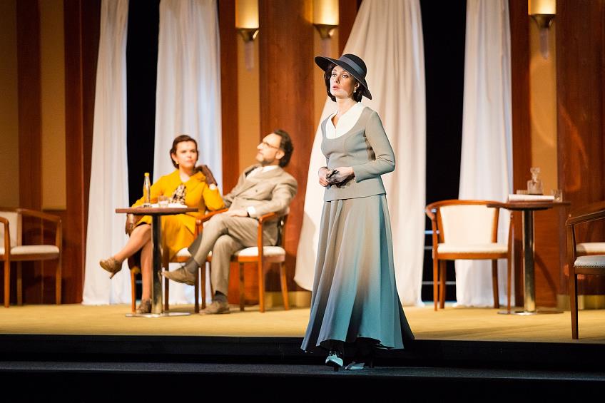 На фешенебельной палубе (сценограф — Лариса Ломакина) она возникает подобно маньякам из фильма — с той же долей навязчивости. Да и музыка Вайнберга во время сцен на лайнере, с переключениями от повторяющегося «крадущегося» лейтмотива к джазовому рифу ударных, все больше нагнетает напряжение.