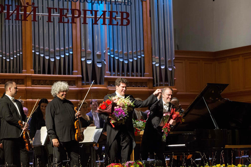 Специальным гостем вечера стал пианист Денис Мацуев. Вместе с гергиевским коллективом он сыграл свой репертуарный «хит» — Третий концерт Рахманинова. Излишние телодвижения и жесты ничуть не мешали уверенному, профессиональному исполнению, в котором ощущалось владение всеми пианистическими приемами. Особенно хорошо у Мацуева получались динамические переходы в контрастных разделах, а в лирических эпизодах он играл как можно проще, подчеркивая песенность тем. По своему настроению и «футбольной» энергии третья часть рахманиновского опуса в чем-то напомнила Первый концерт для фортепиано с оркестром Прокофьева. Именно здесь Мацуев и позволил себе что называется «оторваться», что, впрочем, нисколько не помешало этой музыке и уж явно пришлось по вкусу слушателям.