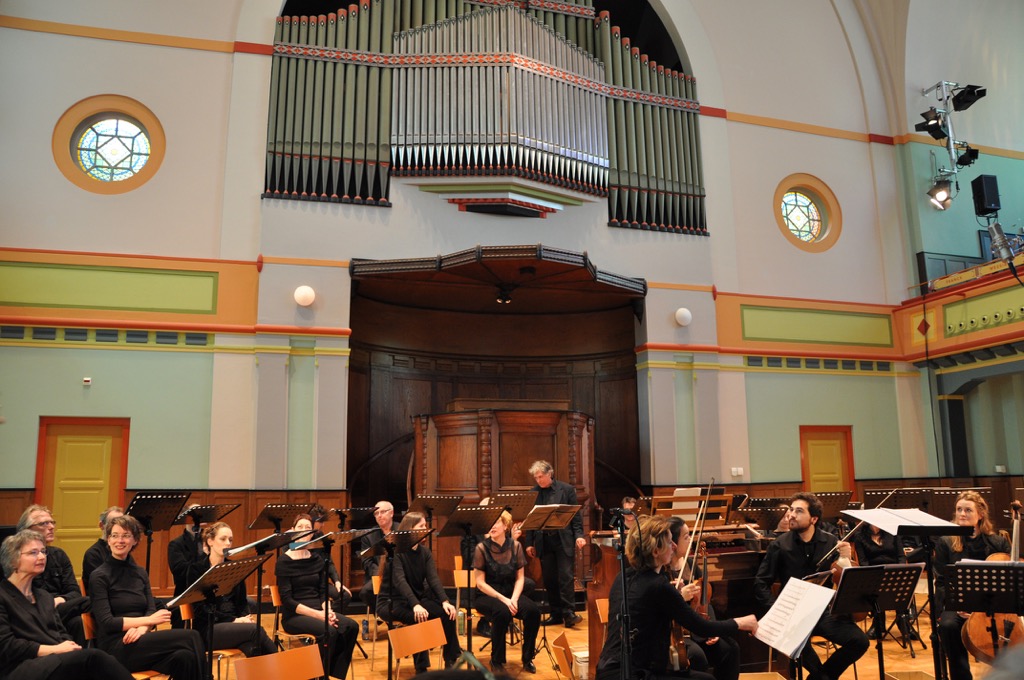 Интимность звучания подчеркивает камерный оркестр: две скрипки, альт, виолончель и фисгармония. Партию фисгармонии, популярнейшего в XIX веке инструмента, исполнил сам Клаас Хук. Благодаря прекрасной акустике и вдумчивому исполнению публика могла четко услышать не просто голос каждого инструмента, а словно саму его душу.