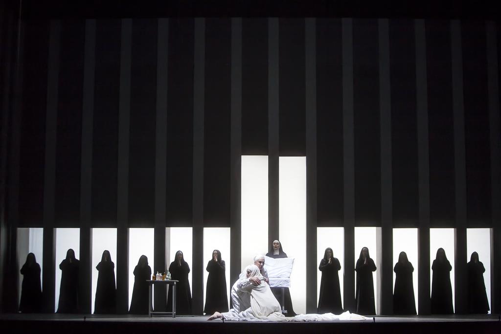 Эмма Белл в партии настоятельницы монастыря мадам Лидуан стала олицетворением трепетной женственности, смирения и скромности. В образе мадам де Круасси (Дорис Зоффель) преобладала старческая властность, способная подчинить себе всё, кроме страха смерти. Ровная вокальная линия Кати Пивек (мать Мария) свидетельствовала о непоколебимом душевном равновесии её героини, не знающей сомнений, не боящейся ни жизни, ни смерти. Кристина Ганш вначале, когда изображала весёлый лёгкий нрав сестры Констанс, немного оттолкнула гипертрофированной мимикой, но потом тронула и покорила светлым лучистым голосом.
