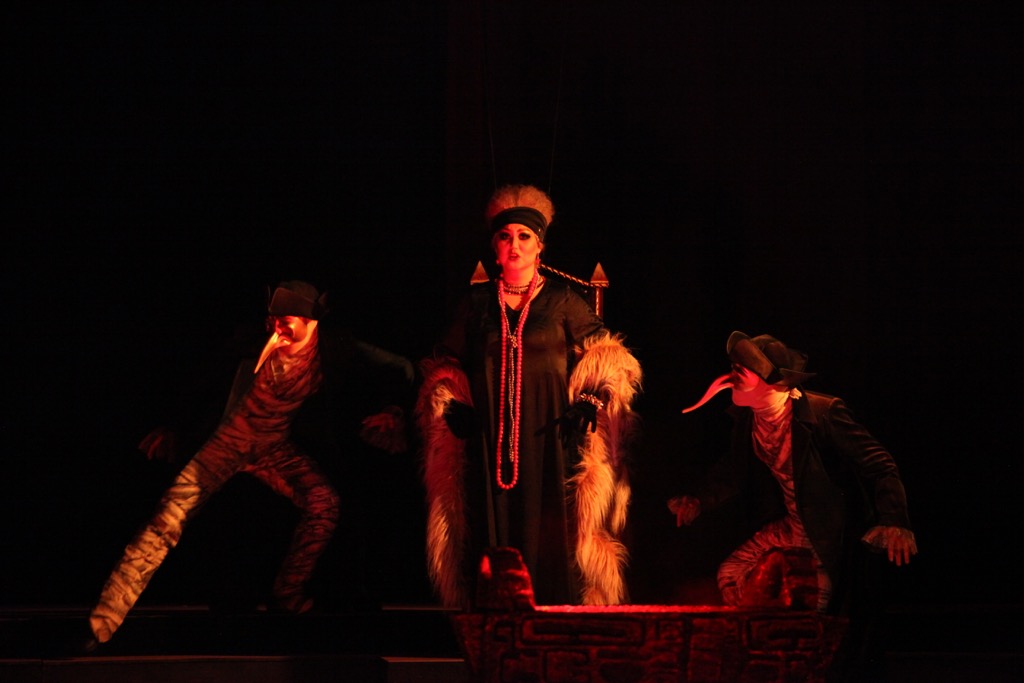Помощников Ульрики посетители пытаются разоблачить, срывая с одного из них маску, однако пророчицы побаиваются. Закутанная в меха, величественная, она прекрасно играет свою роль чуть ли не верховного шамана. Красивая Ольга Жигмитова с её полным бархатным меццо впечатляет. Огромные глаза с вещим взглядом, подчёркнутая отчуждённость.