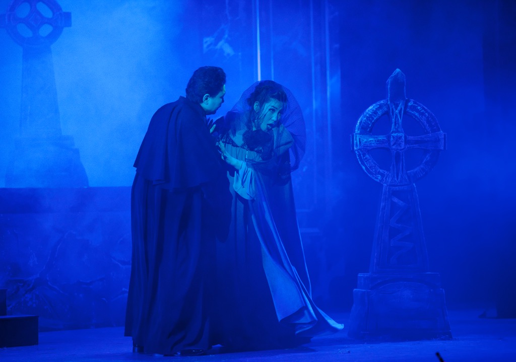 Несмотря на устрашающе-сказочный антураж этой сцены с явным переизбытком дыма, всё в ней достаточно серьёзно, и хор вместе с ёрничающим выпивохой Христианом (Бадма Гомбожапов) прекрасно это отыгрывают. Вообще в спектакле музыкально и пластически отлично проработаны все хоровые эпизоды и все персонажи второго плана, а два заговорщика – Риббинг и Горн – Эдуард Жагбаев и Бат Эрдэнэ Доржцэдэн – не только колоритны статью и поведением, но и привлекают внимание прекрасными голосами.
