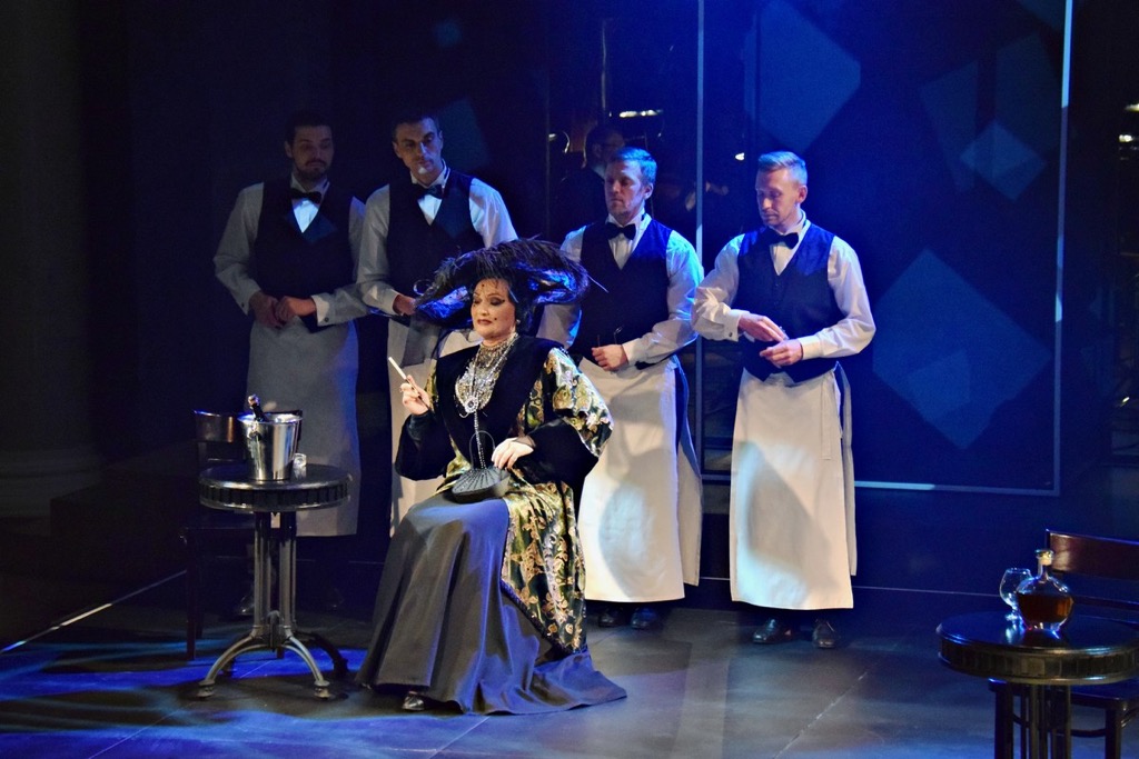 В версии «геликоновцев» спектакль получился как бы в ответ на вопрос: а почему, собственно, молодая девушка должна ехать на заработки для своих родителей и братьев? Так уж ли они набожны и добры, раз отправляют ее туда? Родня словно наваждение преследует героиню: то они как дети в столовой машут ложками и будто требуют еду, то посмеиваются над ней, то разглядывают в лупу. Еще бы: они в потертых лохмотьях, а она — в элегантном платье в стиле ар-нуво.