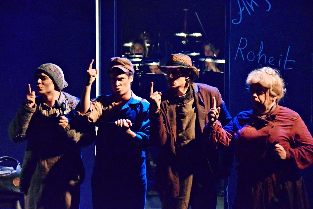 В первую очередь, речь идет о самих зонгах — из них и состоит весь спектакль.