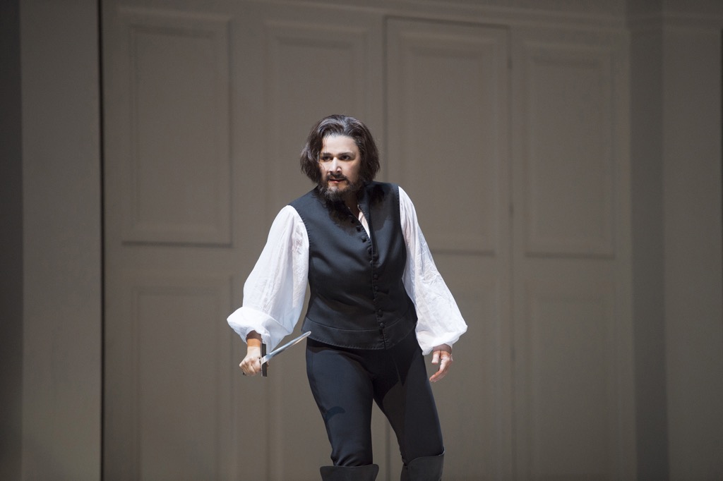 Здесь важно заметить, что вся мизансценная и пластическая парадигма спектакля выстроена Кристофом Лоем на тонко продуманных жестах, практически освобождающих слушателя от необходимости следить за субтитрами: такой живописной и выразительной драматической работы в оперной режиссуре я давно не встречал (у того же Лоя последний раз это было, если я ничего не упустил, в мюнхенской постановке «Роберто Деверё» (2005)). Особенно отчётливо это прослеживалось в игре трёх артистов миманса (статистов), которые практически весь спектакль были на сцене, изображая то слуг, то телохранителей, то насильников, то свиту: с этой адской актёрской задачей виртуозно справились Сантьяго Санчес, Петер Трипуванатакуль и Бенедикт Весенмайер.