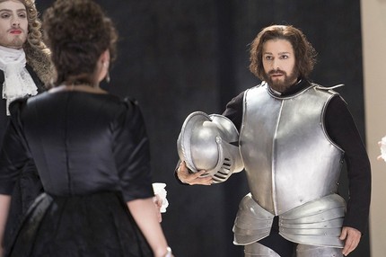 В том же ключе и направлении работают и хореографические инсталляции Андреаса Хайсе: здесь и реконструкция барочного балета, и современный модерн, и пародийный стёб с травестийными персонажами, изображающими заводных кукол. Всё это также работает на общую идею многоуровневой семантики предлагаемого прочтения. Но ярче всего неоднозначность (многослойность) предложенной Кристофом Лоем концепции проявляется в трансмутации главных героев этой истории об обмане, мнимом и подлинном предательстве, обидчивости и страдании как единственном пути к очищению (если не души, то хотя бы мозга).