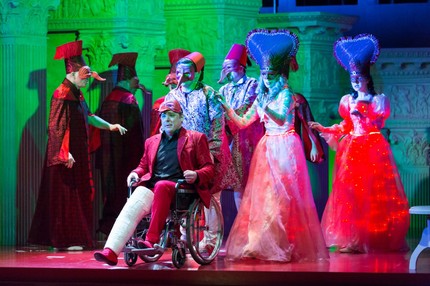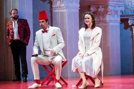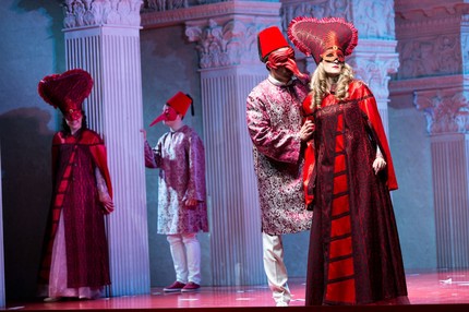 В силу этого ставить «Турка» в эстетике буффонады, как это уместно в случае «Итальянки», – занятие заведомо неблагодарное и бесперспективное. Но именно это – да еще и откровенно бюджетными средствами! – попытался сделать в прошлом году в Пезаро Давиде Ливерморе.