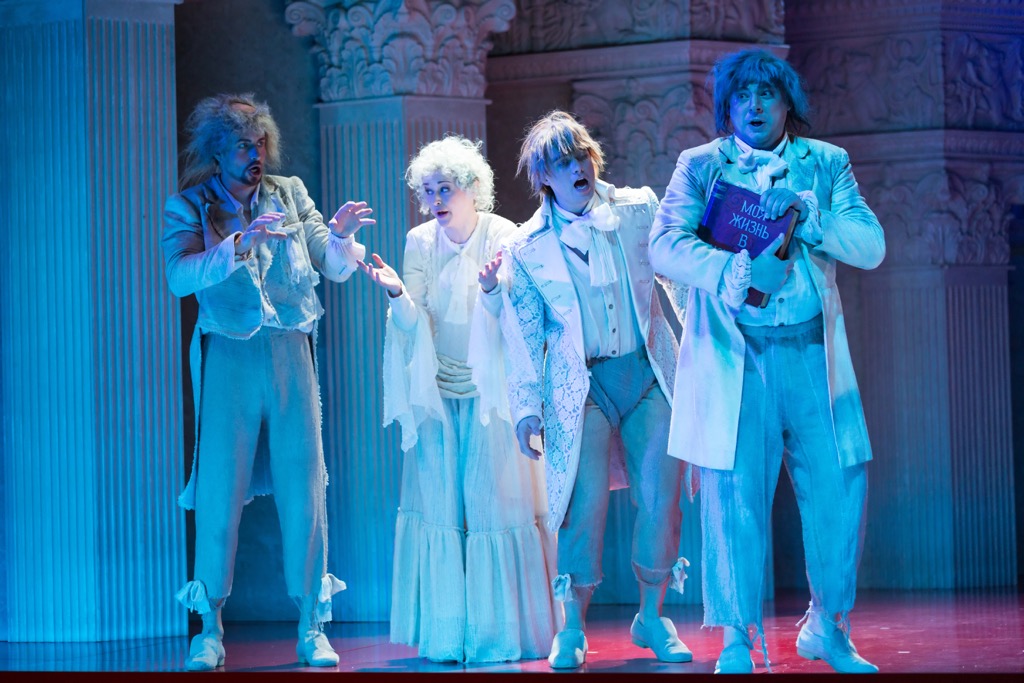 Его захватывающий режиссерско-сценографический пазл сложился до сáмых мельчайших деталей. Отмеченный печатью обстоятельной серьезности, комедийность партитуры он высвечивал в милом, уютно теплом лирико-романтическом аспекте. При этом смелая – но что очень важно, не безрассудная! – фантазия постановщиков уводила в намеренно абстрактное вневременнóе измерение, выдержанное в эстетике современного европейского спектакля с одним важным отличием: с ног на голову в нём ничего поставлено не было.