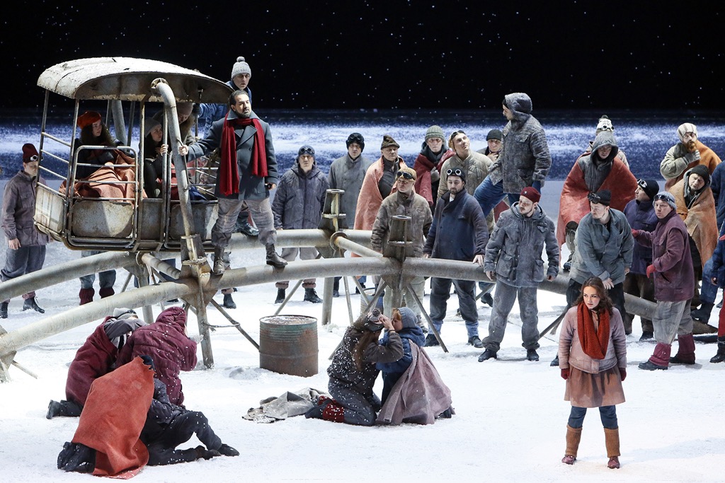 Тема снегов и пронизывающего холода проходит через всю постановку: это какая-то идея фикс, пунктик творческого «помешательства» режиссера и сценографа. Несчастные берендеи, в том числе и дети (артисты детского хора), постоянно кутаются в одеяла и согреваются огнем, разводимым в металлических бочках. Публику же в этом спектакле не греет ничто, а отсутствие режиссерского позитива заставляет удивляться тому, как далеко нужно зайти, чтобы на сцене сотворить подобное, чтобы светлую, наполненную теплом сказку превратить в пустой холодный эрзац. Но именно это и происходит, и при такой ничтожной концепции говорить о характерах, созданных исполнителями, вообще не имеет смысла. Певцам-солистам и хористам можно лишь посочувствовать: им приходится быть частью откровенной постановочной авантюры. Впрочем, за исключением одной лишь фактурной Агунды Кулаевой в партии Весны-Красны (дебютной для певицы) вокальные достижения премьерной постановки, в целом, впечатляют не слишком уж сильно.