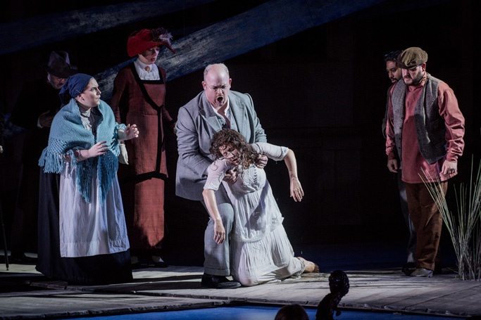 События оперы проходят в провинциальном русском городе в 1860-х годах, но режиссер Оливия Фукс и художник Яннис Таворис, не мудрствуя лукаво, привязали постановку ко времени, в котором жил и творил Яначек.