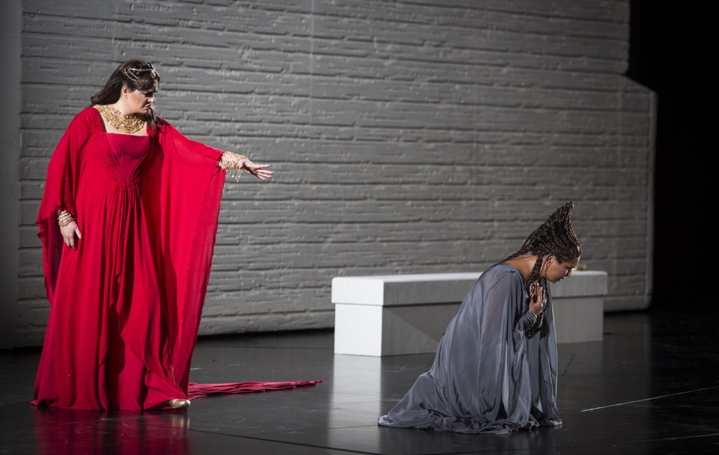 Едва ли не лучше всех выступила Екатерина Семенчук в партии Амнерис: роскошный обертоново жирный нижний регистр, великолепные, пронзительно звонкие, полётные верха, полный вокальный восторг. Образ был сделан традиционно, качественно, в русле четырёхсотлетней истории жанра — с ручными жестами и мимическим лицом: такая визуальная инкрустация, как говорится, подошла бы к любой партии в любой опере.