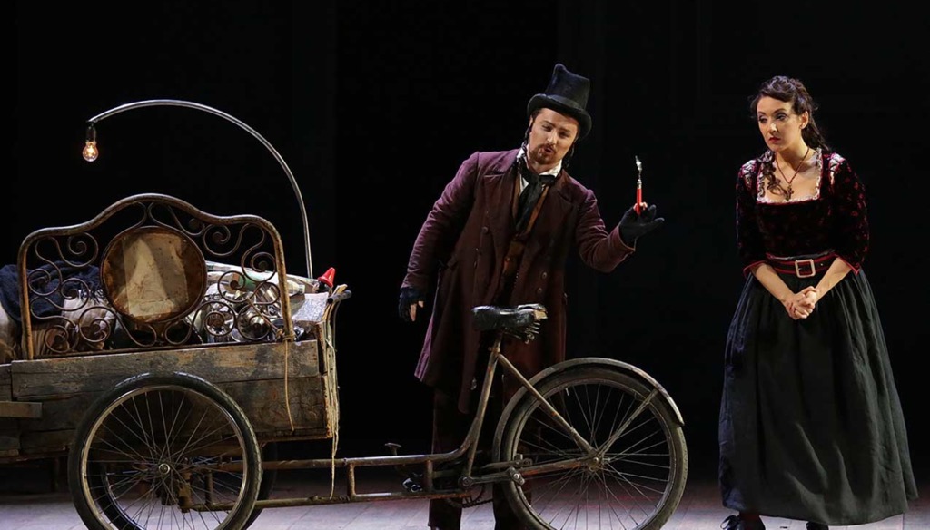 Под торжественную, яркую, ритмичную музыку на сцене появляется настоящая сорока — цирковая артистка Франческа Альберти. Она проделывает сложнейшие гимнастические трюки на канате, заставляя зрителей замирать от напряжения и восторга. В абсолютно классической постановке также принимает участие один из старейших итальянских кукольных театров «Карло Колла и сыновья». Марионетки и акробатика, сельский пейзаж и костюмы XIX века настраивают зрителей на сопереживание простому и наивному, и в то же время такому искреннему и трогательному сюжету.
