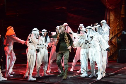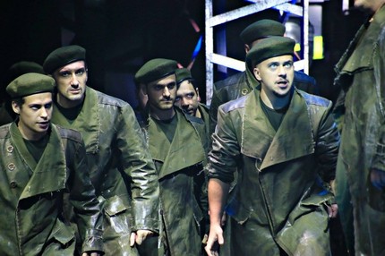 Леонора в этой постановке – словно звезда агитбригады, выступающая перед бойцами, противостоящими террору исламистов, а Манрико – капитально закрутивший с ней роман сексапильный любовник.
