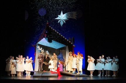 Второй акт спектакля с весьма эксцентричной Пряничной ведьмой – поистине «дьявольская карусель», полная стремительной динамики, наступательного напора и зажигательных гэгов. Просветленному умиротворению «лесного» акта здесь уже нет места, но счастливый финал с воссоединением родителей и детей, с аллегорией Рожественского света и прихода в мир Младенца-Христа, вновь выводит на дорогу вечных христианских ценностей.