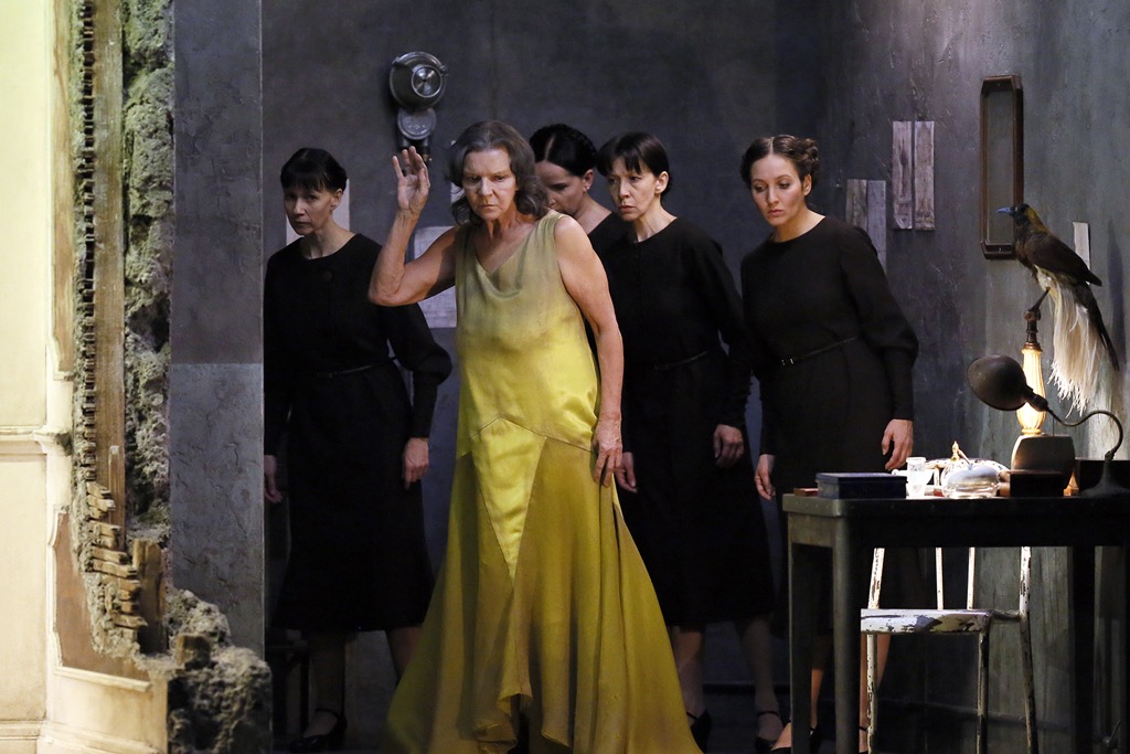 Художник-постановщик «Альцины» Хлоя Лэмфорд загнала героев во все тот же «дом в разрезе», где вышеупомянутый светлый и дорого обставленный будуар, окружают темные обшарпанные клетушки, а на втором этаже над ним – цех по переделке людей в чучела (как выяснилось в финале, действующий и в обратную сторону). Но в «Роделинде» все-таки мелкая детализация рисунка актерской игры была значительно четче и интереснее. Конечно, были отдельные сильные и тонкие моменты, например, как влюбленный в Моргану начальник охраны Оронте имеет возможность находиться не только в будуаре, а повсеместно, видеть ее реальную внешность, но все равно он продолжает ее любить…