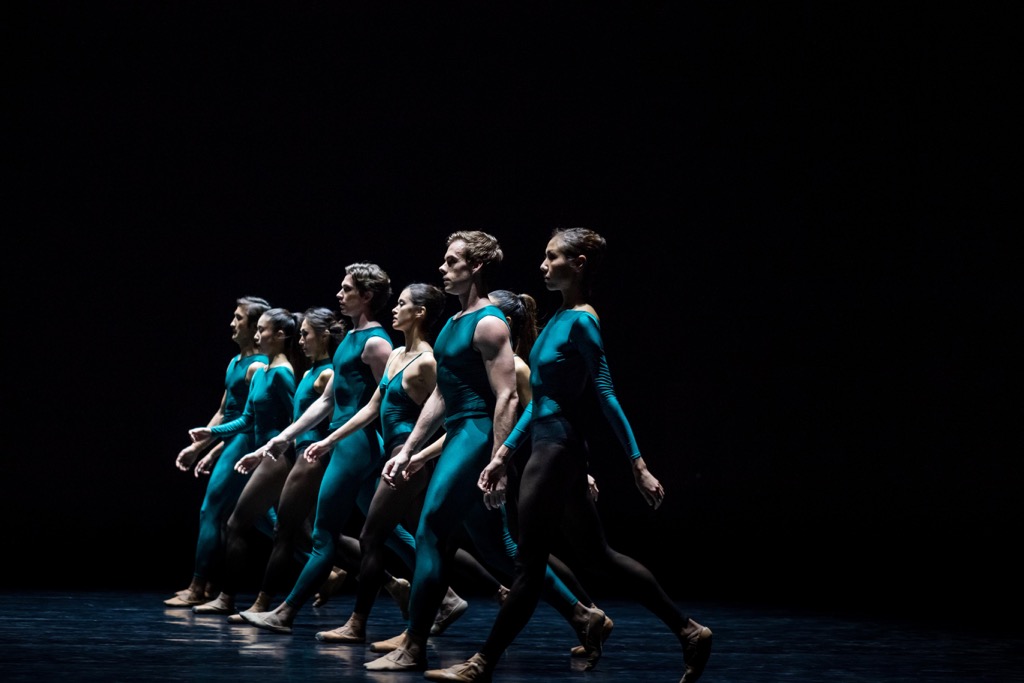 В спектакле «In the Middle, Somеwhat Elevated» пустое пространство сцены заполняется лишь геометрией кордебалетного ансамбля, то «аккомпанирующего» солистам, то делящегося на две контрапунктические линии. Можно трактовать, как выбор по жизни, – танцевать в первом ряду или во втором, а можно и вовсе «плыть» против течения, обособившись посредством сольной импровизации.