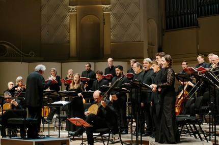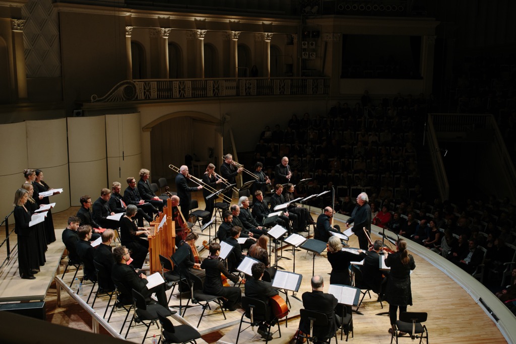 Три года назад в ансамбль певцов из России влилась тройка зарубежных солистов, но и полностью зарубежный состав нынешнего исполнения также интернационален: сопрано Дороти Милдс и Барбара Кабаткова, тенора Рейнуд Ван Мехелен, Сэмьюэл Боден, Уильям Найт и Бенедикт Хаймэс, а также басы Вольф Маттиас Фридрих и Петер Коой. Внимая элегантно тонким, стилистически изысканным вокальным фигурациям этой великолепной восьмерки, в который раз убеждаешься, что при исполнении подобного рода музыки эпохи Ренессанса или барокко, важен в первую очередь не конкретный голос в отдельности, а монолитный певческий ансамбль. А он был просто изумителен! По степени занятости согласно партитуре, вклад каждого певца в общее дело, естественно, различался, но без филигранных штрихов частного не было бы и такой впечатляющей картины общего. Так что в оценке проекта именно ансамбль (а вовсе не солист) – важное ключевое слово.