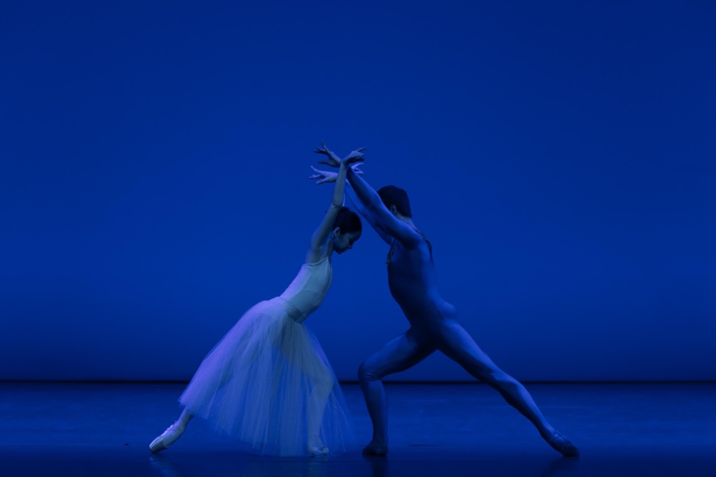 В «Серенаде» главное — не сольные эпизоды. Все они идут на фоне кордебалета, то мягко «аккомпанирующего» солистам, то «контрапунктирующего» их танцу, а то и чётко фиксированным «водопадом» выстраивающегося в барельефные композиции. Рисунок группировки кордебалета, томная пластика движений рук танцовщиц сами по себе «звучат» как музыка. Очаровательный женский кордебалет театра «Астана Балет» чётко, словно изумительные жемчужины, перебираемые невидимой рукой умелого мастера, фиксировал знаменитые парадоксальные баланчиновские нечёткости (количество балерин на сцене постоянно варьировалось, «разбиваясь» на отдельные сольные пробежки или ансамблевые номера). А каждый выразительный жест «Вальса» в великолепном исполнении Дарины Кайрашевой и Ильи Манаенкова или очаровательный лукавый русский танец с солирующей Аяно Такахаси становился не столько движением тела, сколько пробуждением души, — всё нежно, трепетно, словно слегка тронутый кистью акварелиста карандашный рисунок.