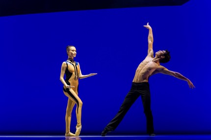 Однако усмотреть контрастность в образе солирующего бежаровского Болеро с обнажённым торсом (Фархад Буриев), пытающегося оживить свою механическую Галатею (Риза Канаткызы), не удалось. Не понятно, почему хореограф в финальной части номера ввёл отзеркаленный дуэт, а не контрастирующий. В плане зрительского восприятия выглядело эффектно, но в плане смысловой кодировки ряда, данное введение в общую концепцию балета никак не вписывалась. Как и не вполне получилось понять смысл введения циркового колеса в сценическое действие (эффект ради самого эффекта или символическое воплощение «колеса судьбы»?), сложных акробатических поддержек или яркого каскада цветовых пятен на экране, подчиняющихся жестовой пластике исполнителей.