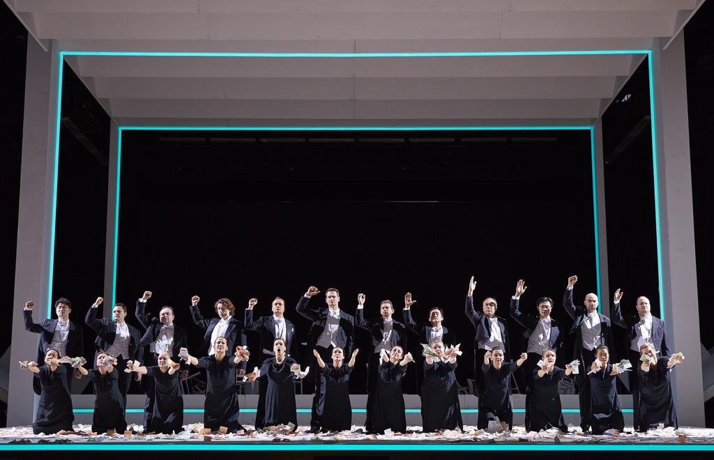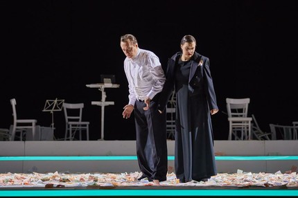 Подобные страсти в зале Гамбургской оперы, конечно, не бушевали и в помине, хотя, задумывая в 1998 году свою постановку как провокационную, Петер Конвичный, может быть, и был бы не против. Исходный пункт рассуждений режиссёра таков: на оперной сцене невозможно аутентично показать бедность, поэтому лучше вообще оказаться от декораций и сделать исполнение концертным.