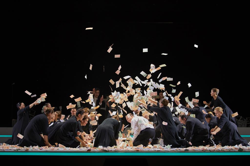 Из реквизита в спектакле только деньги, густо сыплющиеся с потолка как осенние листья. Не обошлось и без стульев: их опрокидывают, показывая, что нарушен социальный и внутренний порядок. Стулья, так замучившие своим присутствием в каждом втором спектакле, простительны, может быть, только Конвичному как стоявшему у истоков этого мебельного движения. На спектакле сразу же становится ясно, откуда набрался своих «революционных» идей Вилли Декер.