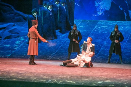 Милая, но иллюстративная статика оригинального либретто Виктора Крылова (1838–1908) зиждется на одноименной поэме Пушкина и поддерживается общелирической нейтральностью музыки Кюи. Практически лишенная этнического аспекта, рельефного национального колорита в прорисовке уклада жизни отдельно взятого кавказского аула, эта музыка придает эфирно-поэтическим образам-прототипам подчеркнутую статуарность, пассивно-холодную романтику мраморных скульптур. Но образы поэтического слова – это одно, а оперный жанр с иерархией героев, высекаемых из поэтики общего целого и обретающих по воле либреттиста конкретные имена и характеры, – совсем ведь другое! И танцевально-хореографический пласт спектакля – та цементирующая субстанция, что всё время держит его драматургический стержень в действенном тонусе, не дает ему остыть.