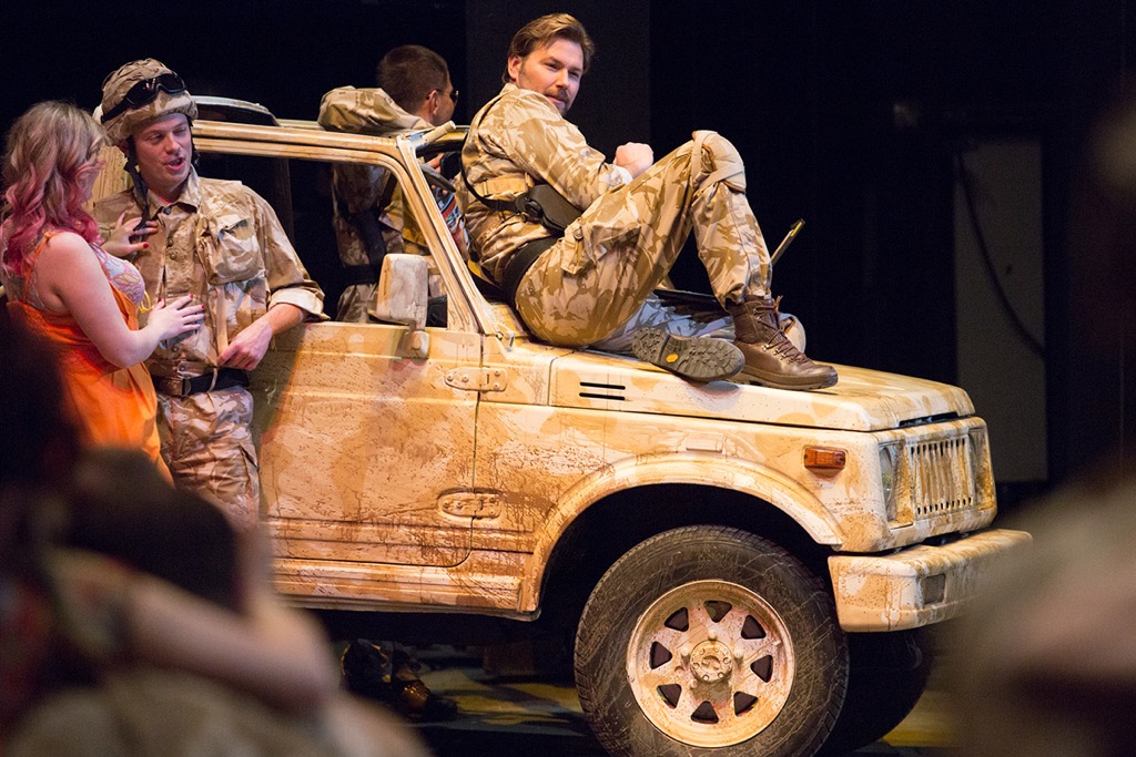 А начало привело к ожившим на сцене знакомым картинками из праздника ВДВ — десантники подшофе плескающиеся в фонтане (в данном случае в бассейне).