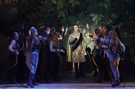 Слово «игра» — ключевое по отношению к новой постановке. Вместо «игр разума» и попытки разгадать фабулу оперы, сплошь усеянной масонской символикой, немецкий режиссёр представил оперную сказку на основе популярного ныне жанра фэнтези с соответствующими персонажами — эльфами, орками, троллями, гномами, драконами. Это игра исполнителей, которые не без удовольствия и даже с драйвом погружаются в условности моцартовского волшебного мира с его лёгким, позитивным юмором.