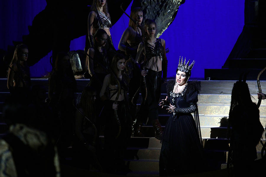 Царица ночи – Надежда Кучер использовала магию своего голоса, чтобы окутать, подчинить своим чарам не только Тамино и Памину, но и весь зрительский зал. Колоратура молодой белорусской вокалистки – лёгкая, подвижная. Чтобы так филигранно точно пропеть все пассажи со сложнейшими кварто-квинтовыми и секстовыми скачками, а также чисто взять верхние ноты, нужно не только иметь прекрасную техническую подготовку (иначе легко сорвать голос), стальные нервы, но и немалый сценический опыт.